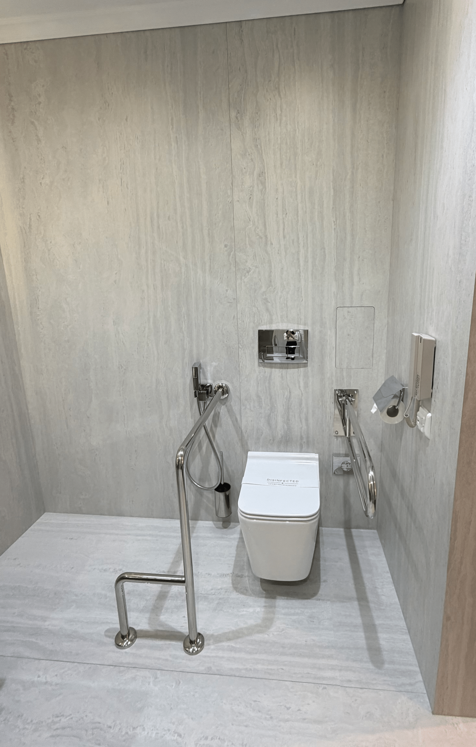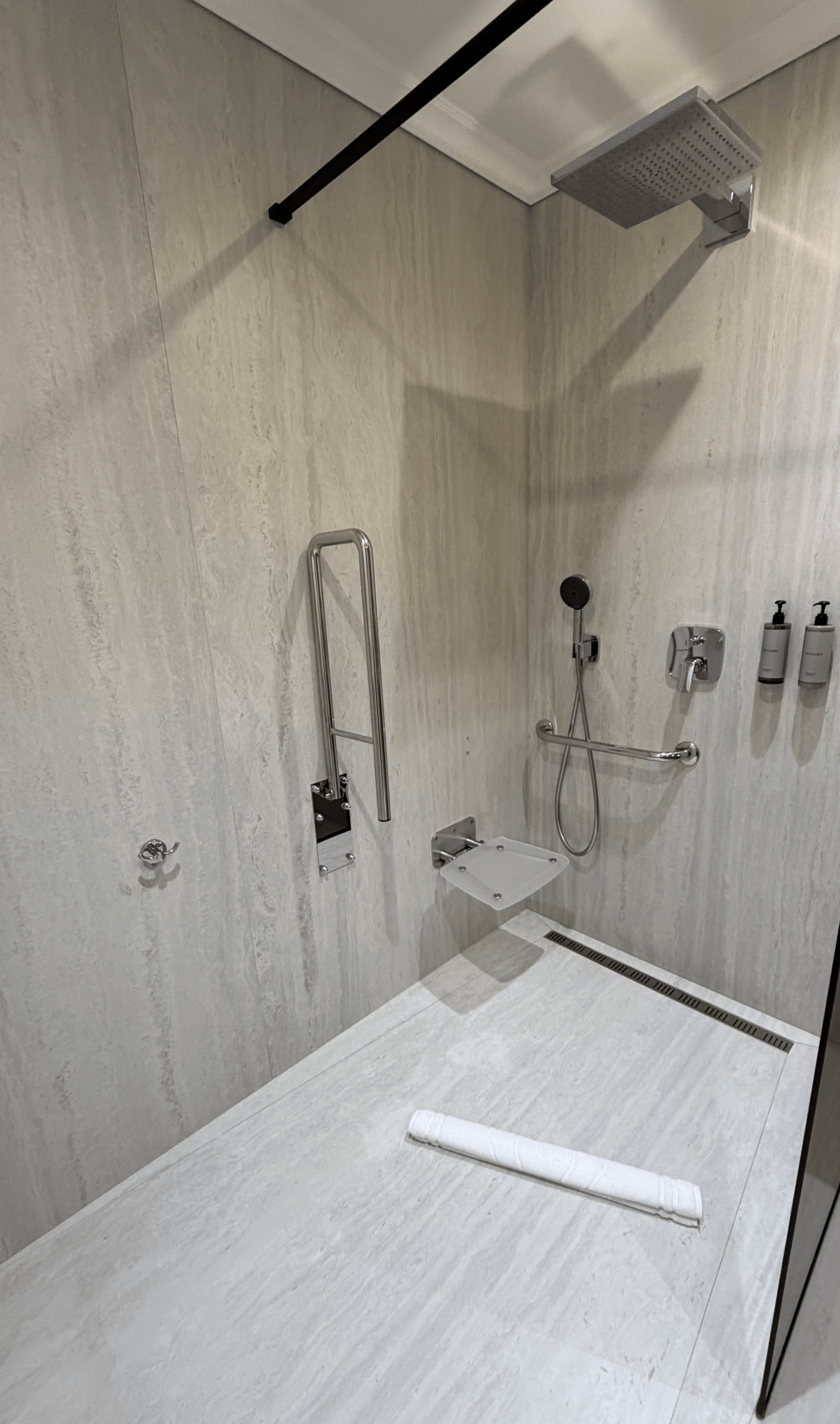 Просторий номер із безбар’єрним доступом, створений з урахуванням принципів доступності. Передбачено зручне планування, розширені проходи та адаптовану ванну кімнату для комфортного проживання.
